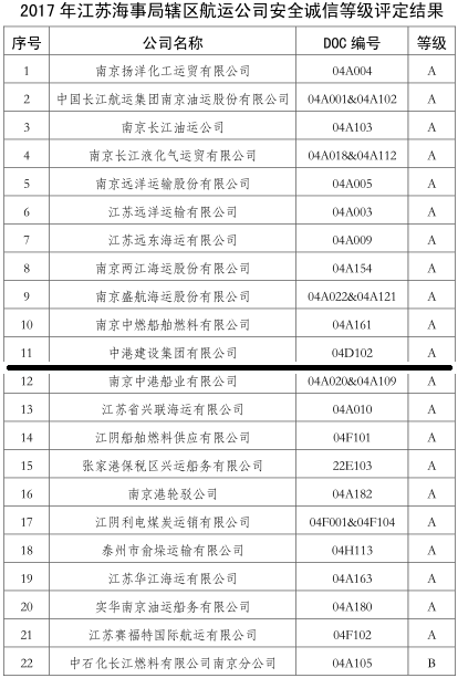 中港建設集團榮獲“江蘇海事局安全誠信等級A級公司” 榮譽稱號