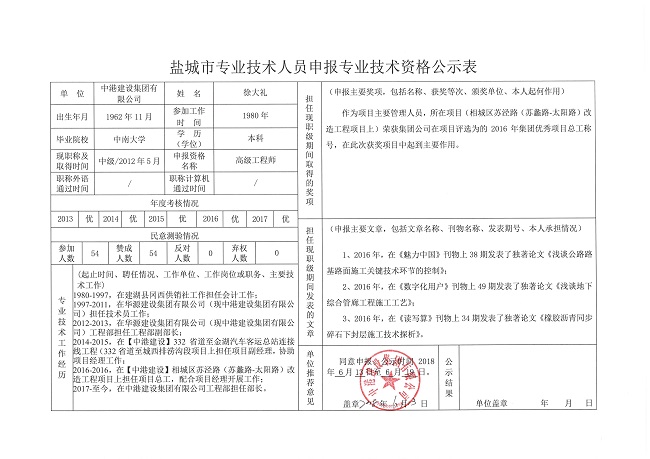 專業技術人員申報專業技術資格公示表—徐大禮