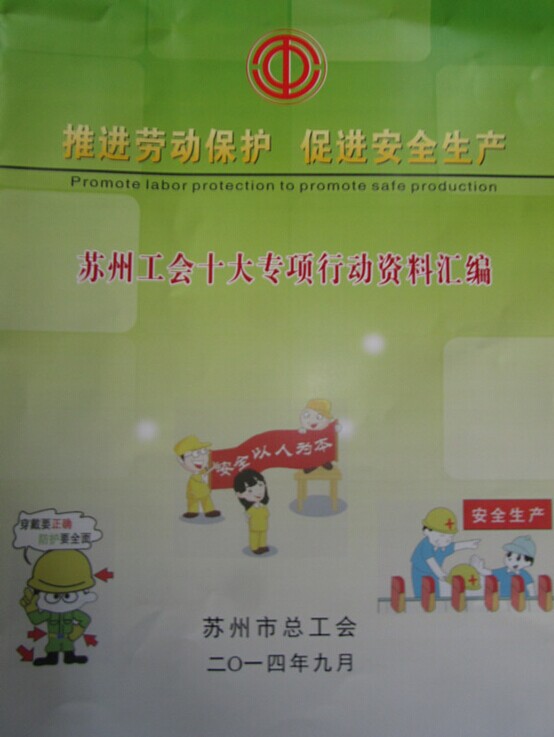 為進一步推進工會勞動保護、促進企業安全生產,維護職工安全健康權益,按照市委、市政府和省總工會安全生產工作的指示精神和部署要求,近日,市總工會印發了《蘇州工會推進勞動保護、促進安全生產十大專項行動實施方案》,并編印了配套資料匯編,從現在開始至2015年12月底,在全市工會開展十大專項行動。
